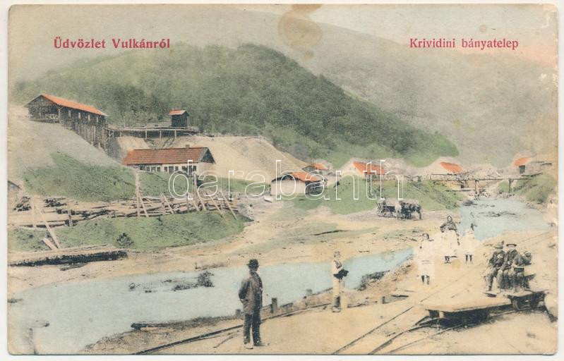 1906 Vulkán, Zsilyvajdejvulkán, Jiu-Vaidei-Vulcan, Vulcan; Krivádiai (krividini, krividiai) bánya telep, iparvasút. Herz Arnold kiadása / coal mine, industrial railway (Rb)