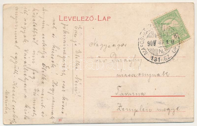 1909 Marosvásárhely, Targu Mures; Bolyay (Bolyai) utca, Pap üzlete / street view, shops + "MAROS-VÁSÁRHELY - KOCSÁRD 131. SZ." vasúti mozgóposta bélyegző (EK)