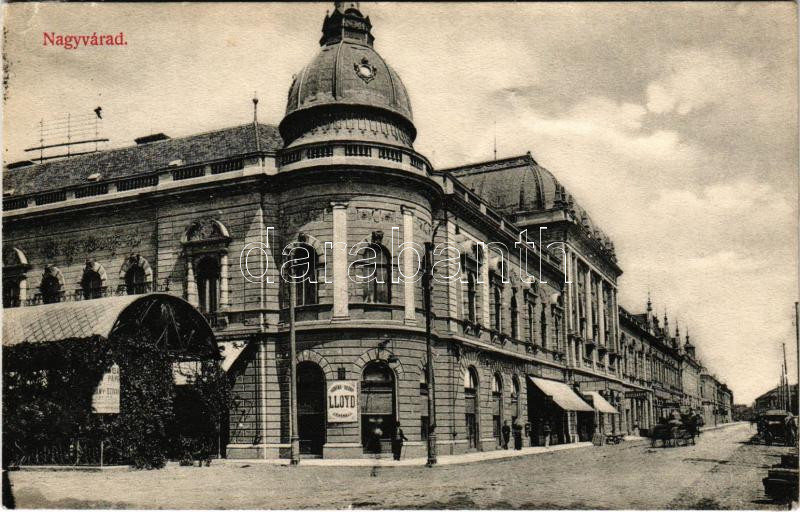 1911 Nagyvárad, Oradea; Lloyd kávéház, üzletek. Rigler József Ede r.-t. kiadása / café, shops (r)