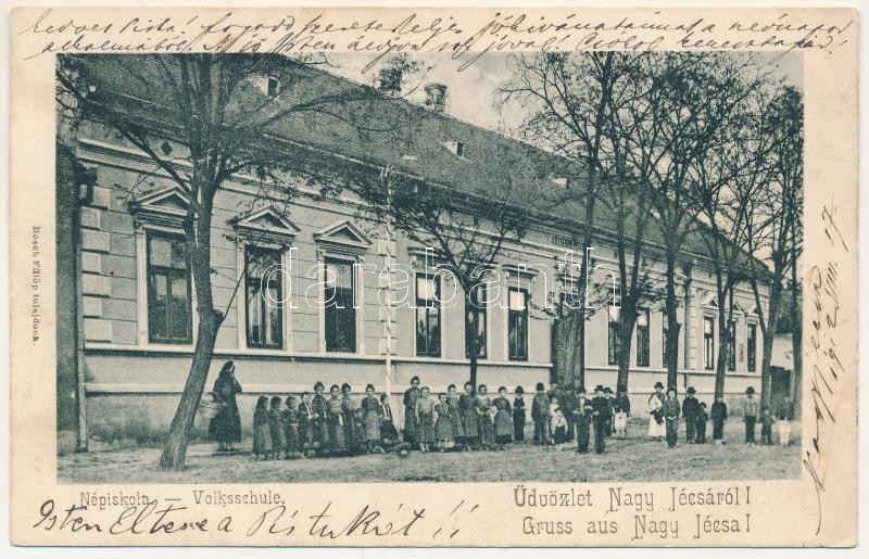 1912 Nagyjécsa, Grossjetscha, Iecea Mare; Népiskola. Bosch Fülöp kiadása / Volksschule / school (Rb)