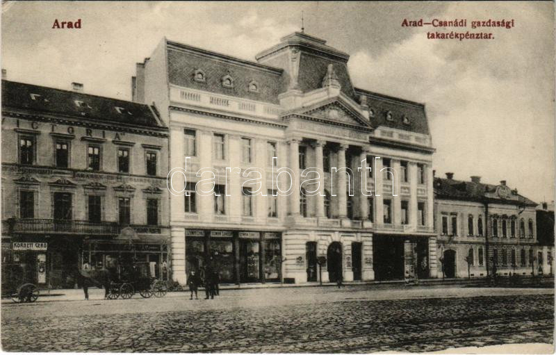 1913 Arad, Arad-Csanádi gazdasági takarékpénztár, Kornett Gerő, Domán Sándor üzlete / savings bank, shops (EK)