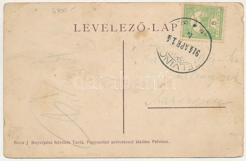 1914 Felvinc, Vintu de Sus, Unirea; Állami elemi iskola, gyógyszertár. Botár J. fényképész felvétele, Fogyasztási Szövetkezet kiadása / school, pharmacy (kis szakadások / small tears)