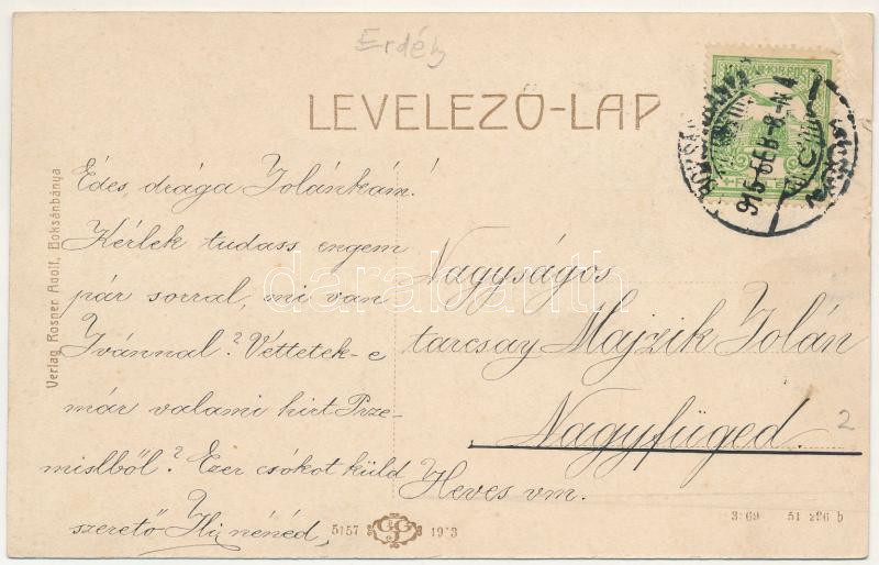 1915 Boksánbánya, Románbogsán, Németbogsán, Deutsch-Bogsan, Bocsa Montana; utca, Kir. Járásbíróság. Rosner Adolf kiadása / street view, district court (EB)
