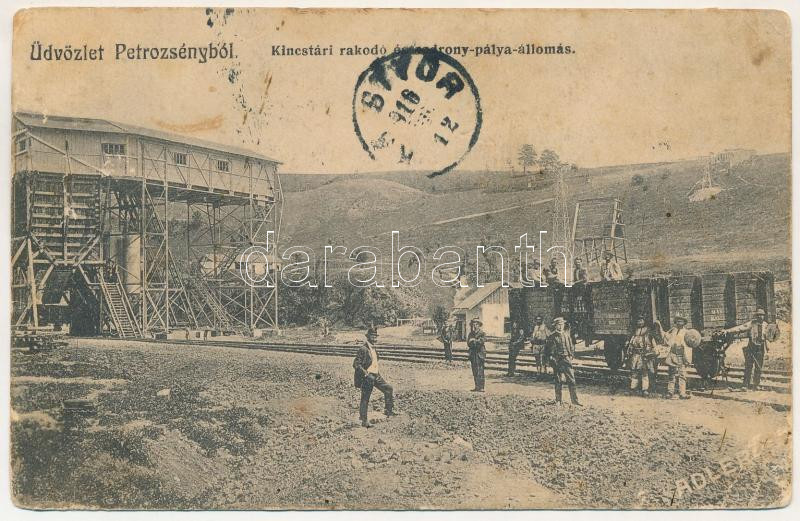 1916 Petrozsény, Petroseni, Petrosani; Kincstári rakodó és sodronypálya állomás, bánya. Adler fényirda kiadása / loading stand, industrial railway, mine (Rb)