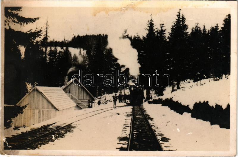 1941 Kommandó, Komandó, Comandau; iparvasút télen, gőzmozdony, vonat. Lichtenstein Henrik kiadása / industrial railway in winter, locomotive, train (felületi sérülés / surface damage)