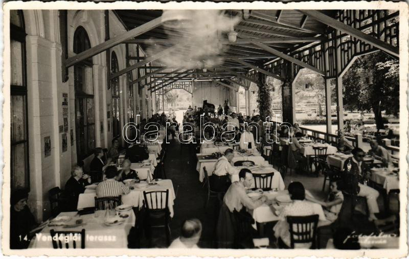 1942 Félixfürdő, Baile Felix; vendéglő, terasz pincérekkel és vendégekkel / restaurant terrace with waiters and guests