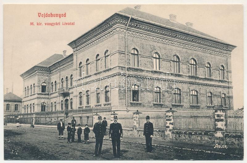 Vajdahunyad, Hunedoara; M. kir. vasgyári hivatal. Adler fényirda (Szászváros) 1909. / iron factory office (fl)