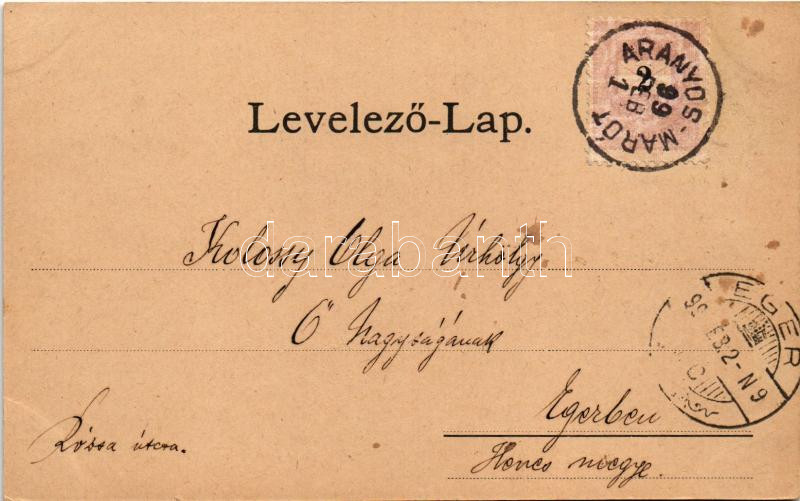 1899 Aranyosmarót, Zlaté Moravce; Megyeháza és Törvényszéki palota, Nagyszálloda. Szecessziós-virágos keret / county hall, court. Art Nouveau, floral frame (EK)