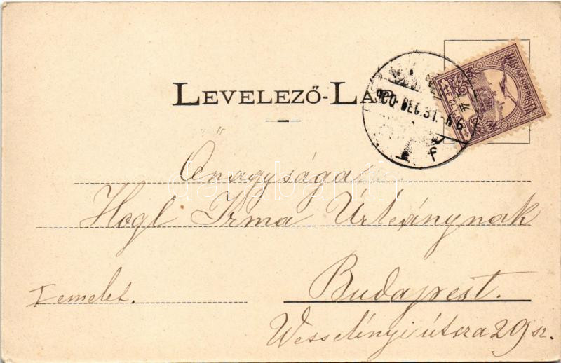 1900 Szomolnok, Schmölnitz, Smolník; Uhornai tó, Uhornai vám, látkép. Kiadja Wlaszlovits Gusztáv 1041. / Úhorná tax office and lake, general view. Art Nouveau, floral (EK)