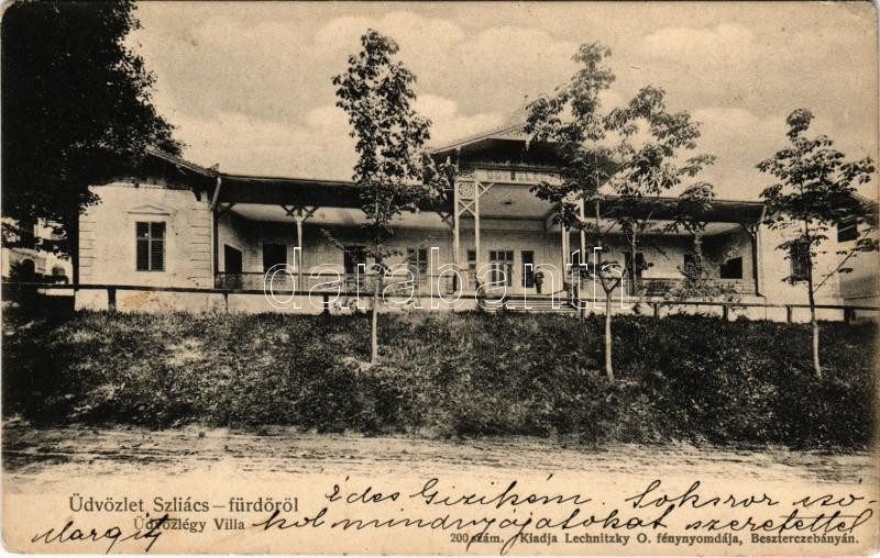 1904 Szliácsfürdő, Kúpele Sliac; Üdvözlégy villa, nyaraló. Kiadja Lechnitzky O. / villa (Rb)
