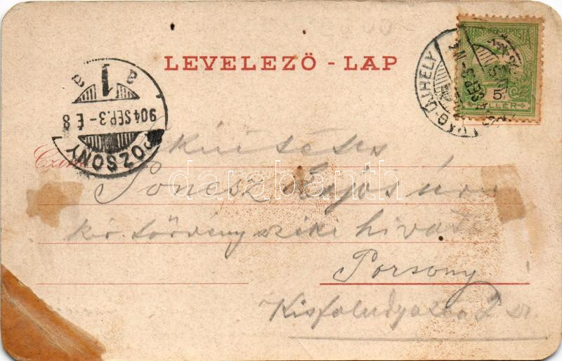 1904 Vágújhely, Waag-Neustadt, Nové Mesto nad Váhom; Fő tér, templom, üzletek. Horovitz Adolf kiadása / main square, church, shops (r)