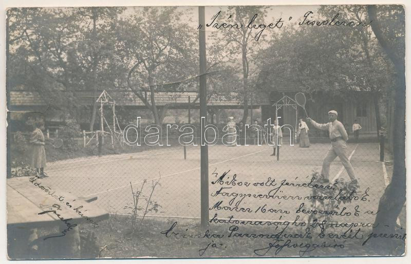 1906 Tiszolc, Tisovec; Irén liget, teniszpálya teniszezőkkel / tennis court with players. photo (fa)