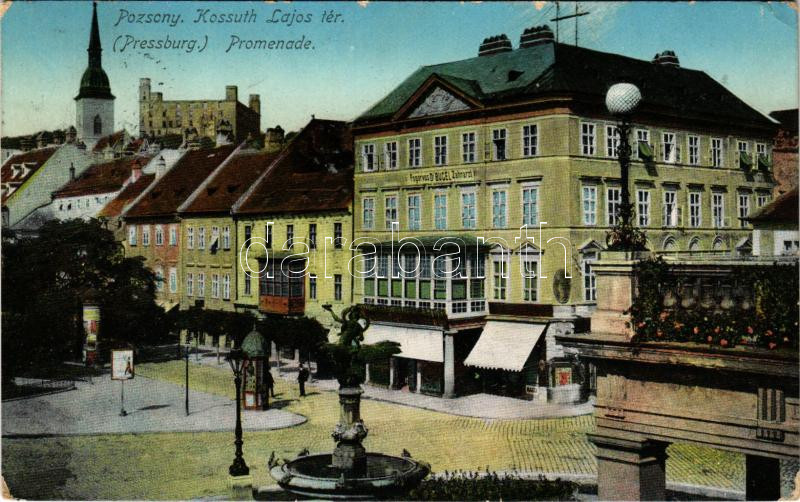 1914 Pozsony, Pressburg, Bratislava; Kossuth Lajos tér, vár, Dr. Bugel fogorvos rendelője / square, castle, dentist (EB)