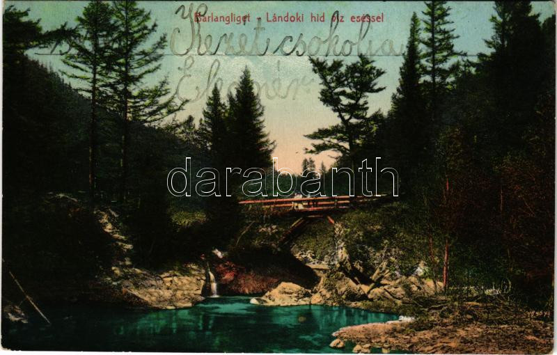 1916 Barlangliget, Höhlenhain, Tatranská Kotlina (Magas-Tátra, Vysoké Tatry); Landoki híd. Wlaszlovits Gusztáv kiadása / Landoker Brücke / wooden bridge by Lendak