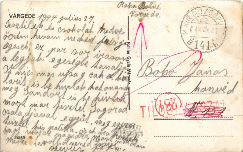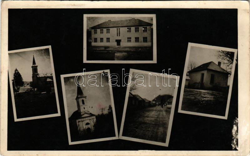 1944 Várgede, Hodejov; részletek, templom. Köhler Gyula kiadása / multi-view postcard with church + "M. KIR. MOZGÓPOSTA 141 B" mozgóposta bélyegző (fl)