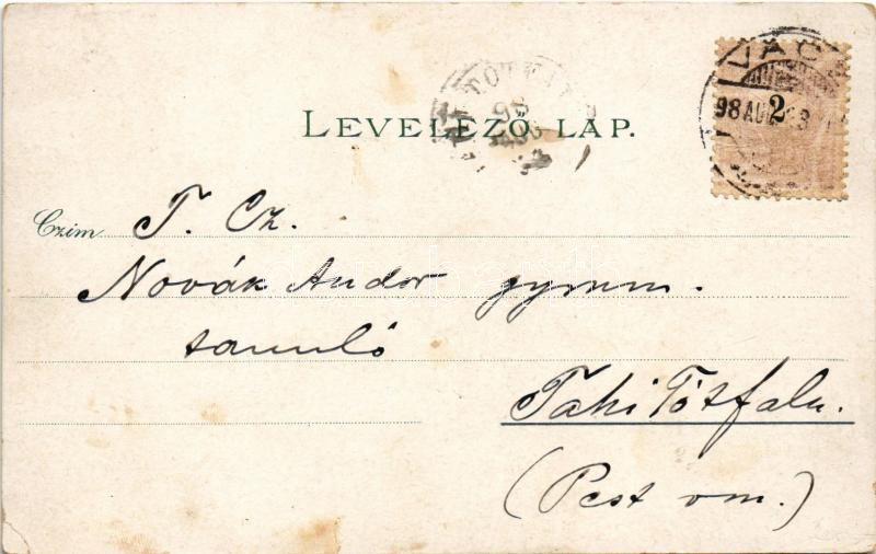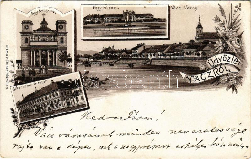1898 Vác, Nagytemplom, fegyintézet, siketnéma intézet. Ottmar Zieher Art Nouveau, floral, litho (EK)