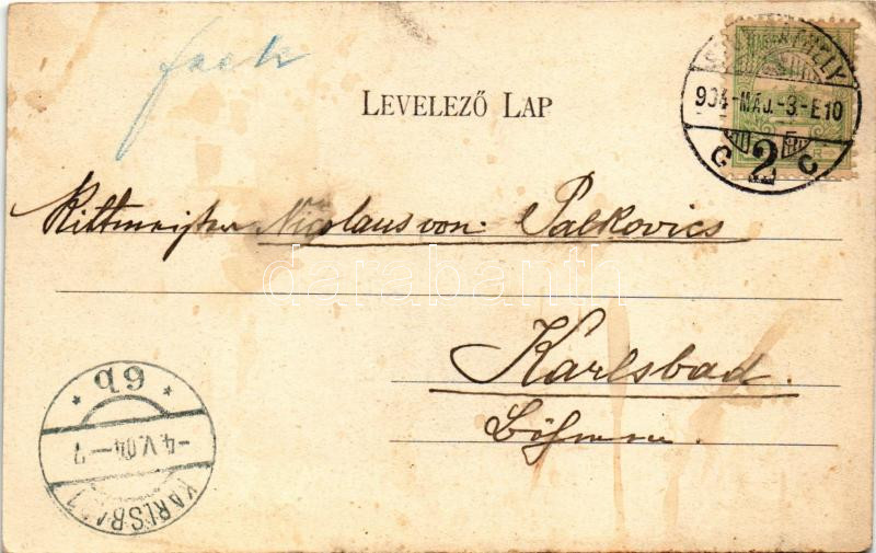 1904 Szombathely, Vármegyei kaszinó, Posch Testvérek vendéglője, férfi kerékpárral. Steiner Testvérek kiadása (ázott sarok / wet corner)