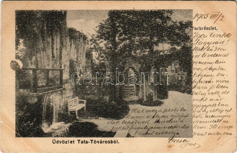 1905 Tata, Tata-Tóváros; Parkrészlet. Amon Gyula kiadása (felületi sérülés / surface damage)