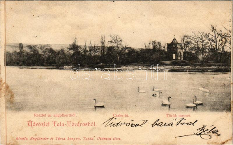 1905 Tata-Tóváros, Tatatóváros; Angolkerti részlet, Cseke tó, Török mecset. Engländer és Társa kiadása (fl)