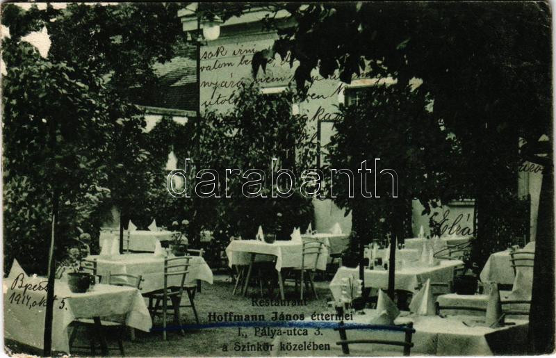 1914 Budapest I. Hoffmann János "Öreg diófa" étterme, kerthelyiség. Pálya utca 3. A Budai Színkör és a Déli Vasút közelében (r)