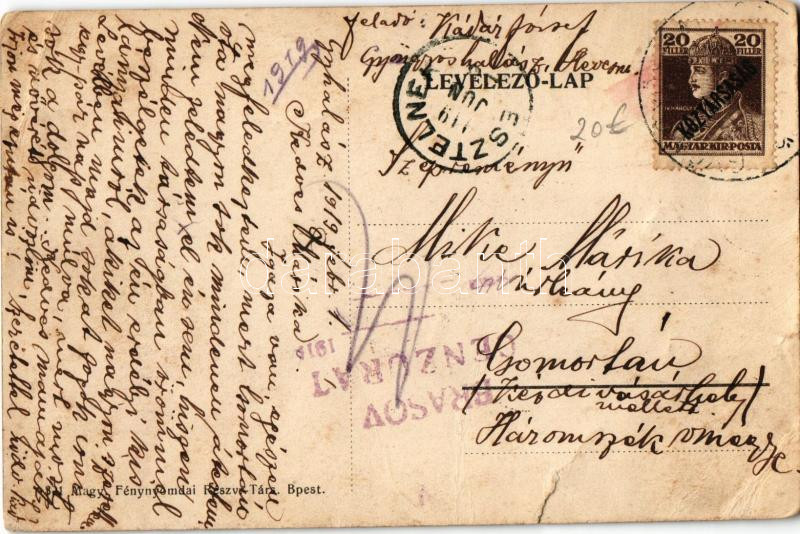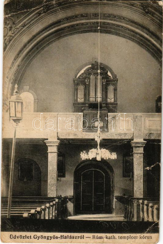 1919 Gyöngyöshalász, Gyöngyös-Halász; Római katolikus templom, belső, kórus + "BRASOV CENZURAT 1919" (szakadások / tears)