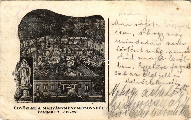 1923 Budapest I. Márványmenyasszony étterem, vendéglő reklámlapja (fa)
