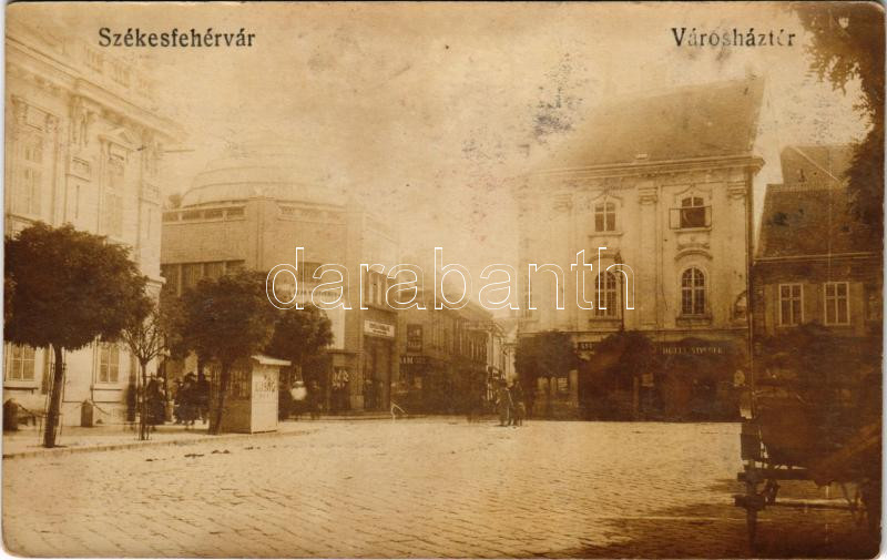 1925 Székesfehérvár, Városház tér, gyógyszertár, Deák Testvérek, Deutsch Manó és fia üzlete. Szigeti A. látkép levelezőlap-készítő kiadása, photo (fl)