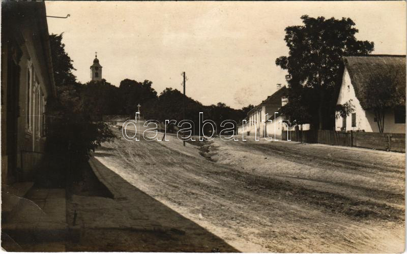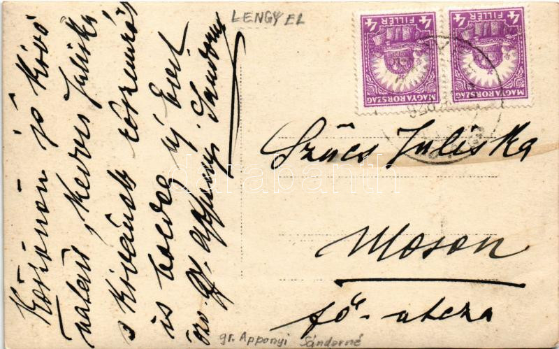 1928 Lengyel, Fő utca. Hátoldalon özv. gróf Apponyi Sándorné levele, photo (vágott / cut)