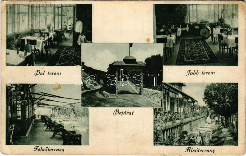 1932 Budapest XII. Farkasvölgy, Ördögorom csárda, bejárat, felső és alsó terasz, bal és jobb terem belső (ragasztónyom / glue mark)