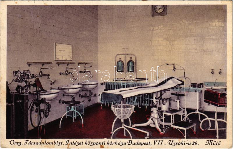 1932 Budapest XIV. Országos Társadalombiztosító Intézet (OTI) központi kórháza, Uzsoki utcai kórház (korábban izraelita leányárvaház), belső, műtő. Uzsoki utca 29-35. (fl)