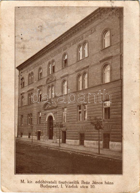 1935 Budapest I. M. kir. adóhivatali tisztviselők Bráz János háza. Várfok utca 10. (kopott sarkak / worn corners)