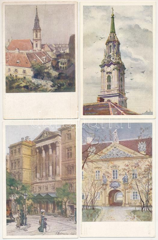 Budapest - 7 db régi képeslap a Műemlékek Országos Bizottságának sorozatából