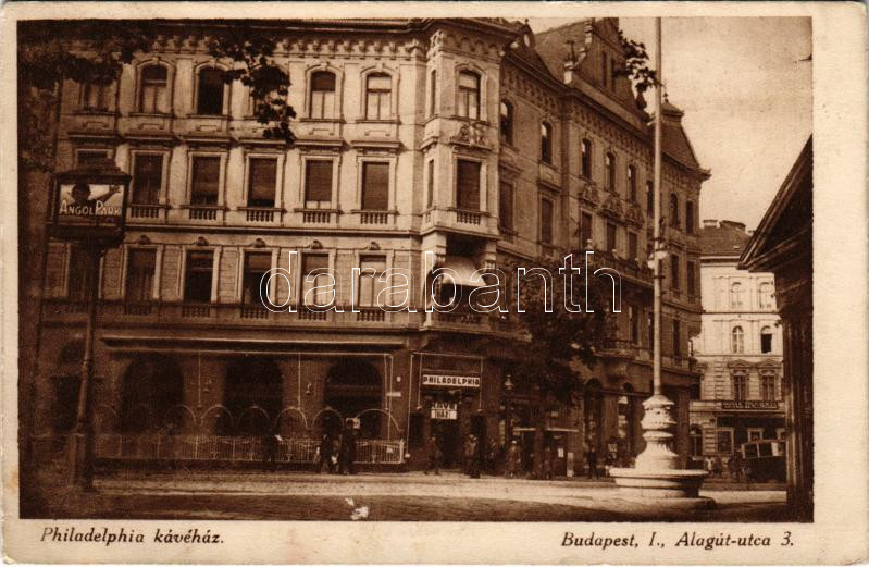 Budapest I. Philadelphia kávéház (tulajdonos Szabó Sámuel). Alagút utca 3. (EK)
