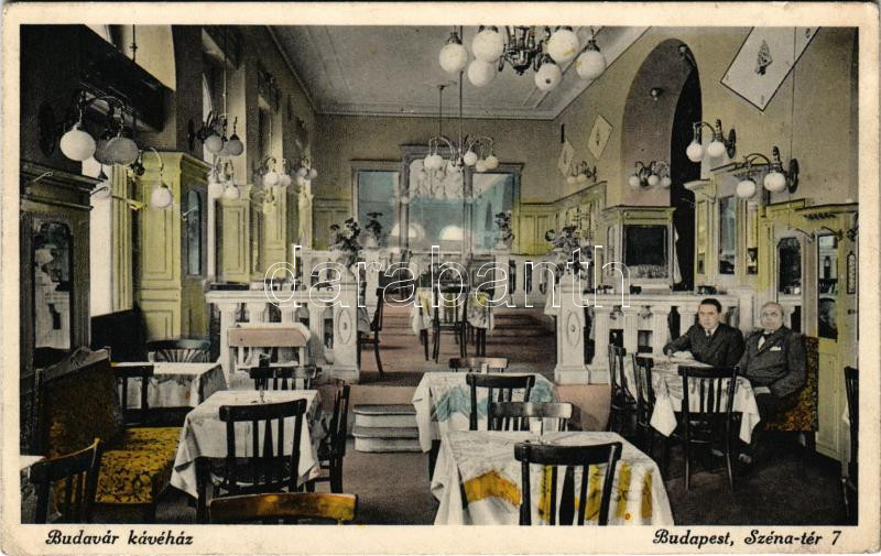 Budapest I. Víziváros, Budavár kávéház, belső, Pomikalszky Gyuláné tulajdonos. Széna tér 7. (EK)
