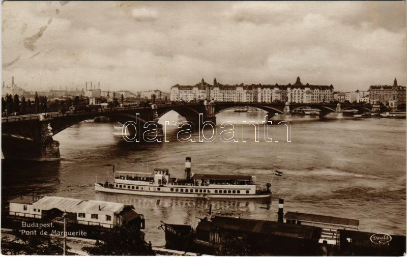 Budapest, Margit híd, villamos, gőzhajó. Divald