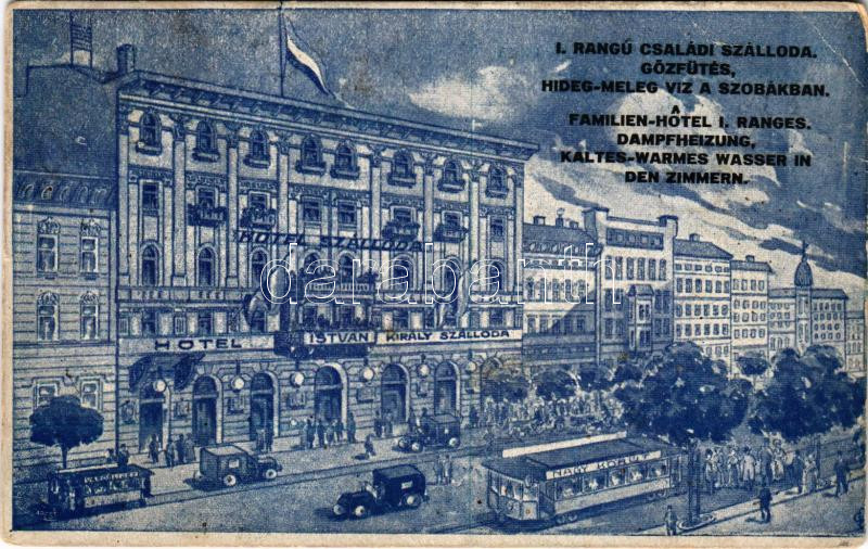 Budapest VI. István Király szálloda, villamosok, automobil, reklám. Podmaniczky utca 8. (EB)
