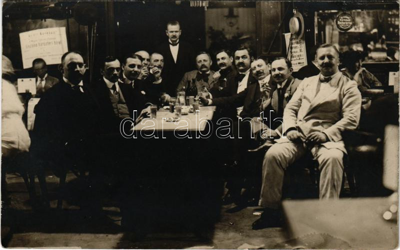 Budapest VII. Baross tér, Keleti kávéház, italozó férfiak társasága pincérrel. photo (EK)
