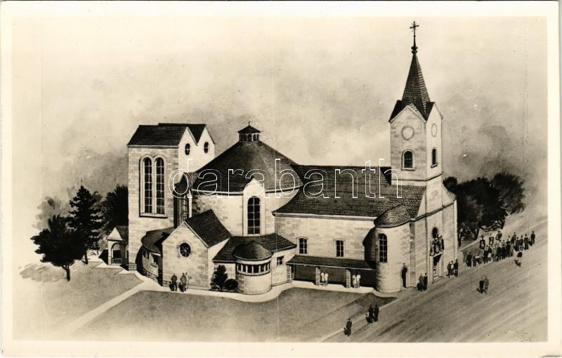 Tárnok, a megnagyobbítandó római katolikus templom külső látképe. Tervezte Urbányi Vilmos építőművész (1942)