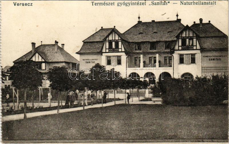 1921 Versec, Werschetz, Vrsac; Természetgyógyintézet "Sanitas" / Naturheilanstalt Sanitas / spa (ragasztónyom / glue marks)