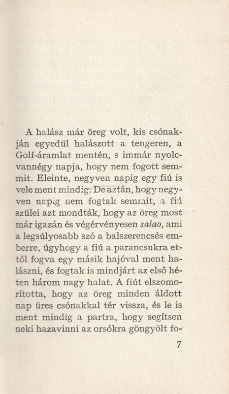 Az öreg halász és a tenger. Fordította Ottlik Géza. (Számozott.)