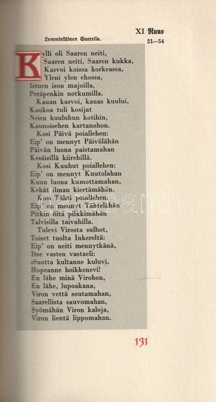 Kalevala. [Finn nyelvű illusztrált kiadás, Akseli Gallen-Kallela finn festőművész grafikáival.]