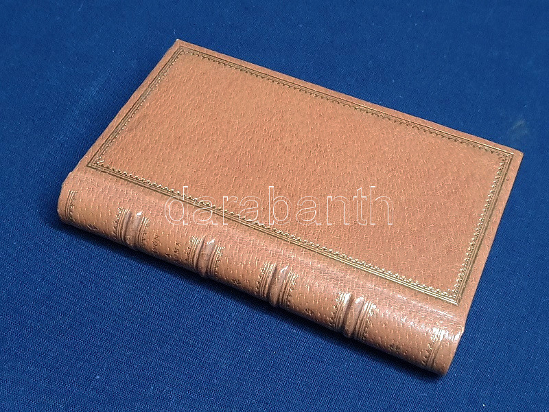 Aranyozott, álbordás kiadói bőrkötésben, felül színes festésű lapszélekkel. Szép példány.