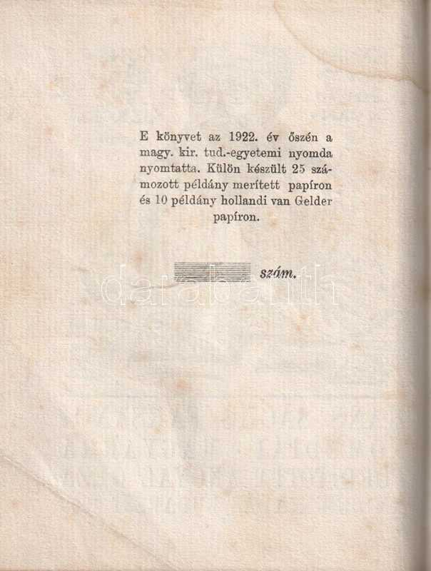 Budapest, 1923. Amicus-kiadás (M. Kir. Egyetemi Nyomda). 103 + [1] p. Első magyar kiadás.