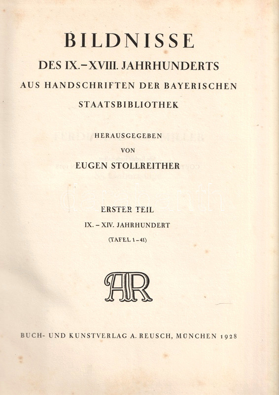 Bildnisse des IX.-XVIII. Jahrhunderts aus Handschriften der Bayerrischen Staatsbibliothek. Erster Teil: IX-XIV. Jahrhundert. [Unicus, nem jelent meg több rész.]