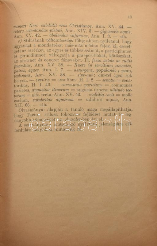 Szemelvények P. Cornelius Tacitus műveiből. Szerk. és magyarázatokkal ellátták: Édes Jenő és vitéz Esztergomy Ferenc. Bp., én. (1931), Franklin, 137+3 p. Kiadói papírkötés, sérült gerinccel, ceruzás bejelölésekkel, bejegyzésekkel és aláhúzásokkal.