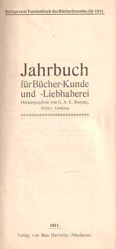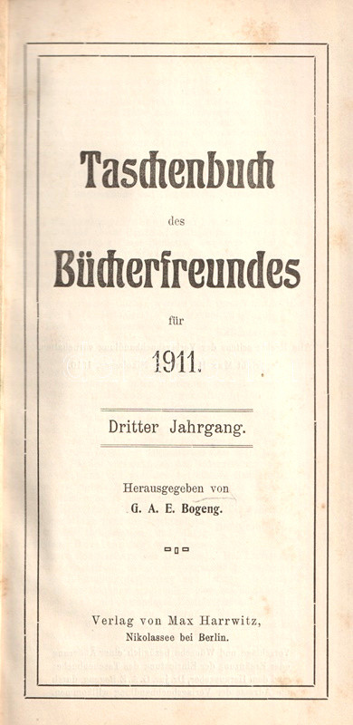 Taschenbuch des Bücherfreundes für 1911. Jahrbuch für Bücher-Kunde und -Liebhaberei 1911. Herausgegeben von G. A. E. Bogeng.