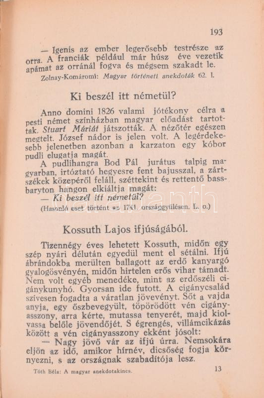Tóth Béla: A magyar anekdotakincs. Gyűjtötte és magyarázta: - -. Thesaurus Anecdoton Hungarorum. Bp.,1935,Singer és Wolfner, 768 p. Kiadói egészvászon-kötés.