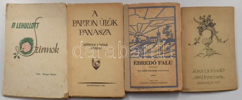 Kiss Sándor (Nagyacsád): Ébredő falu. Versek. Pápa, 1929, Főiskolai-ny., 95+1 p. A borítón linómetszettel. Kiadói illusztrált papírkötés, foltos, kissé szakadt borítóval, javított gerinccel.;
