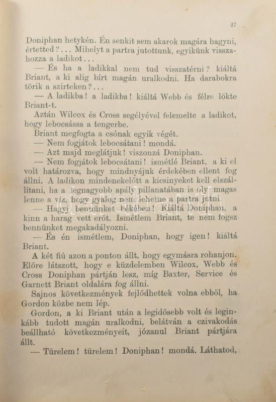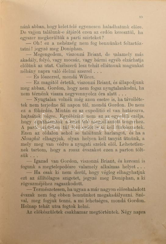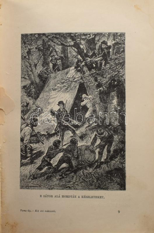 Verne Gyula: Két évi vakáció. Ford.: Huszár Imre. Bp., 1900, Franklin-Társulat, 432 p. Kiadói aranyozott, festett, illusztrált egészvászon-kötés, kissé viseltes, foltos borítóval, helyenként kissé sérült, foltos lapokkal, a címlap tetején kivágásból eredő hiánnyal, néhány kijáró lappal.