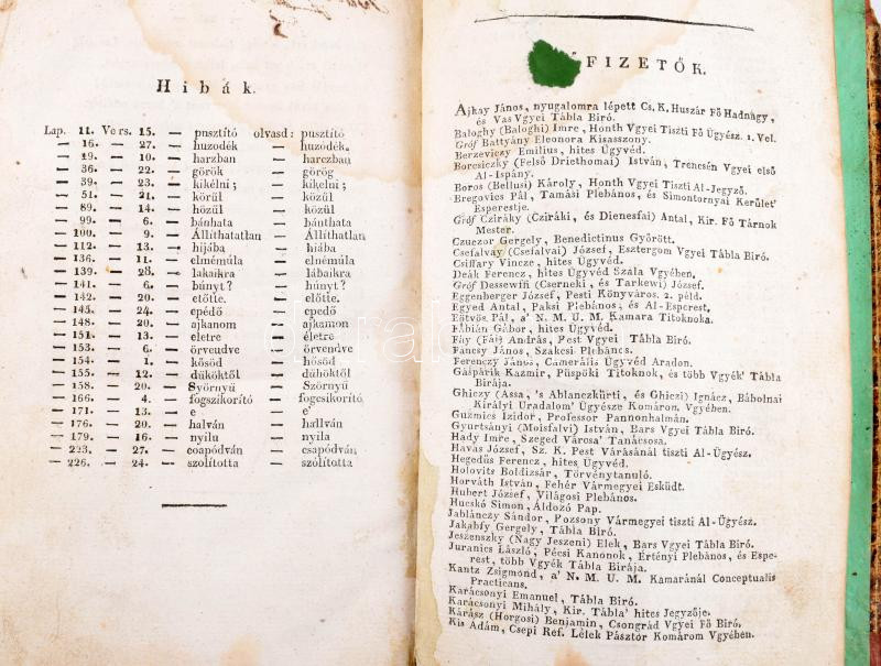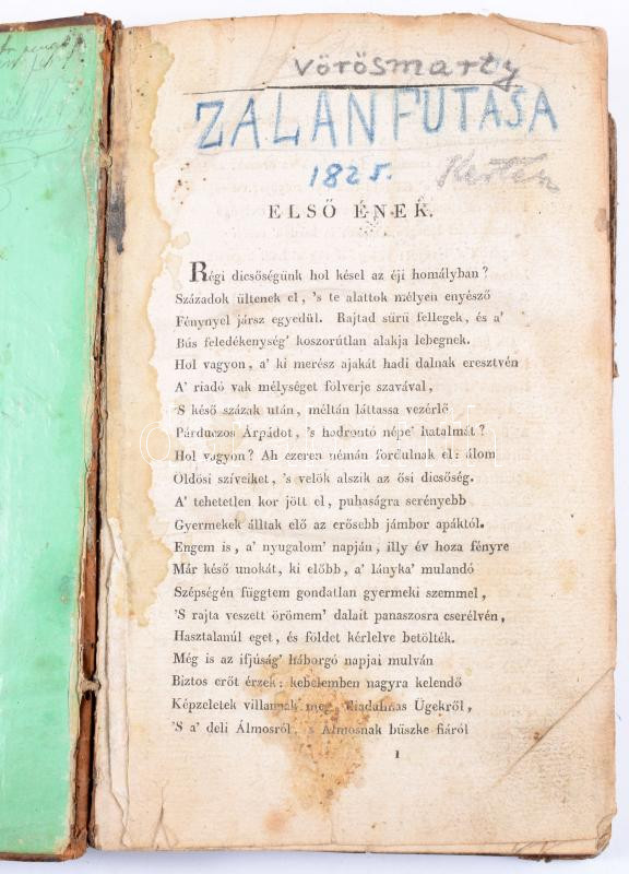 Pesten, 1825. Petrózai Trattner Mátyás. (Címlap hiányzik) +245+(3)p. A honfoglalást megörökítő nagy nemzeti eposz a reformkor és a magyar romantika kezdetének emblematikus alkotása.